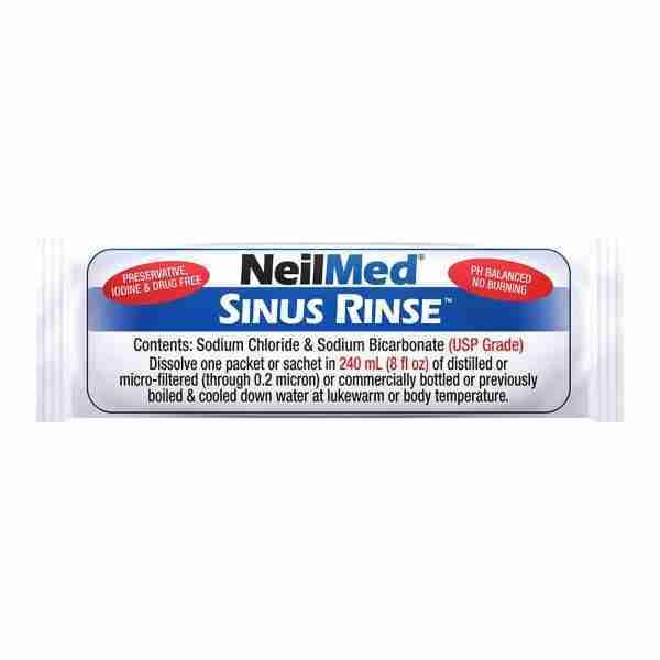 - Soothing saline nasal rinse comes in 50 premixed packets