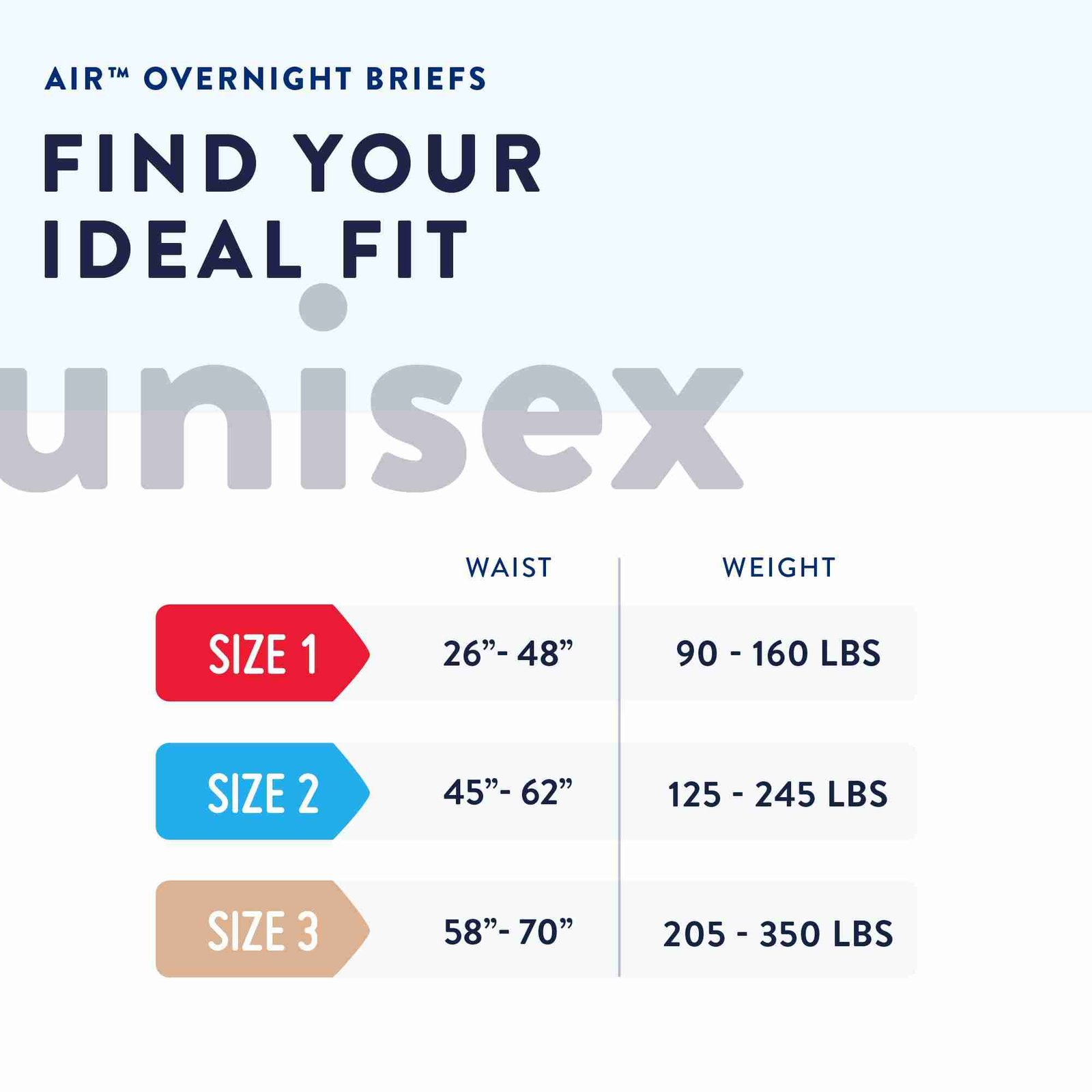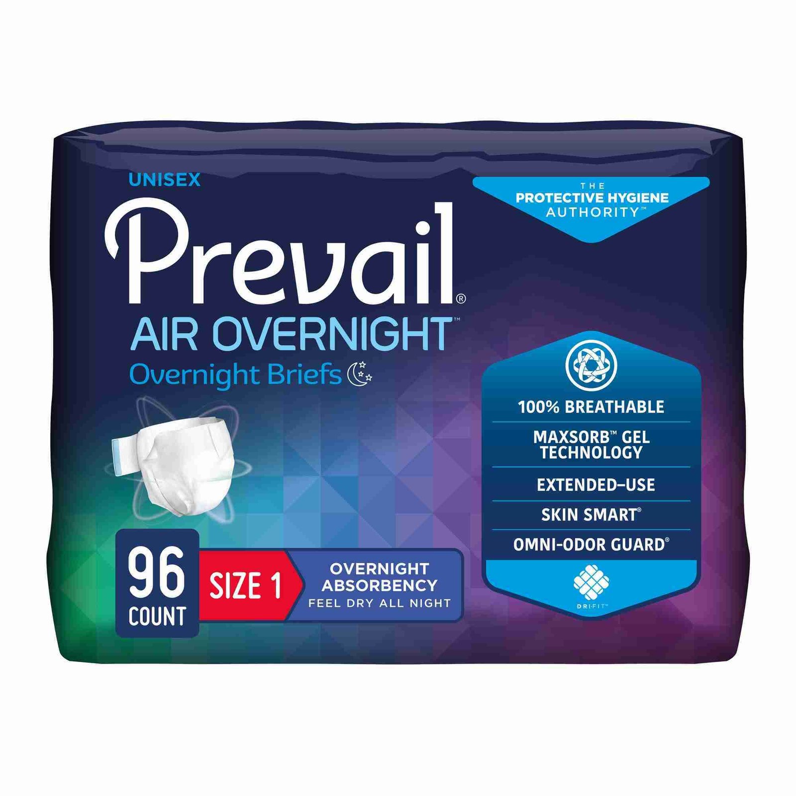 - These 26-to 48-inch Prevail® AIR™ overnight briefs offer incontinence protection for adults