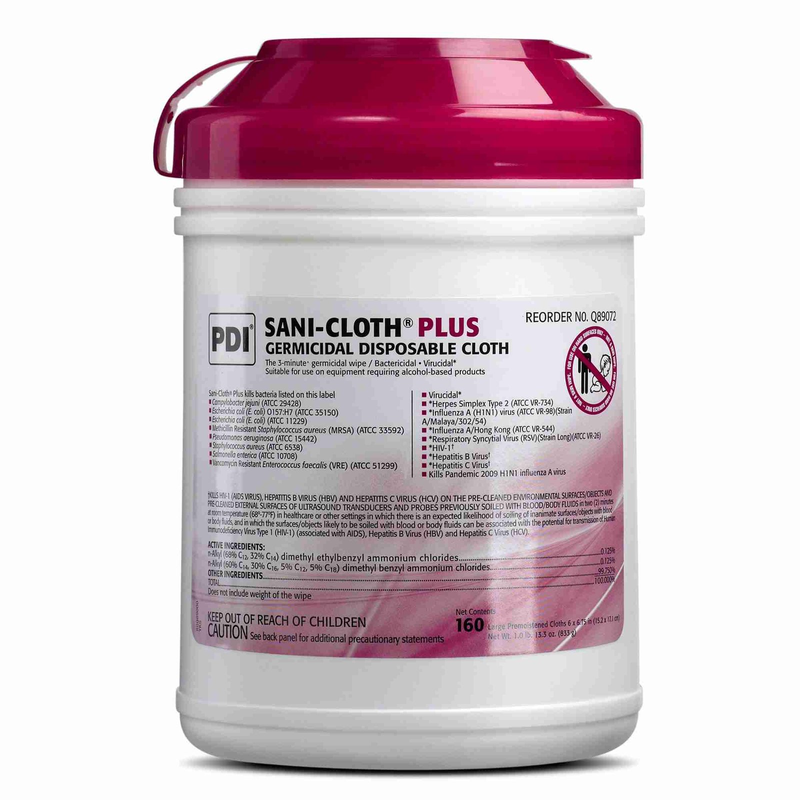 Sani-Cloth® Plus Germicidal Wipe Disinfectant Cleaner, Non-Sterile Canister, 6 x 6¾ Inch