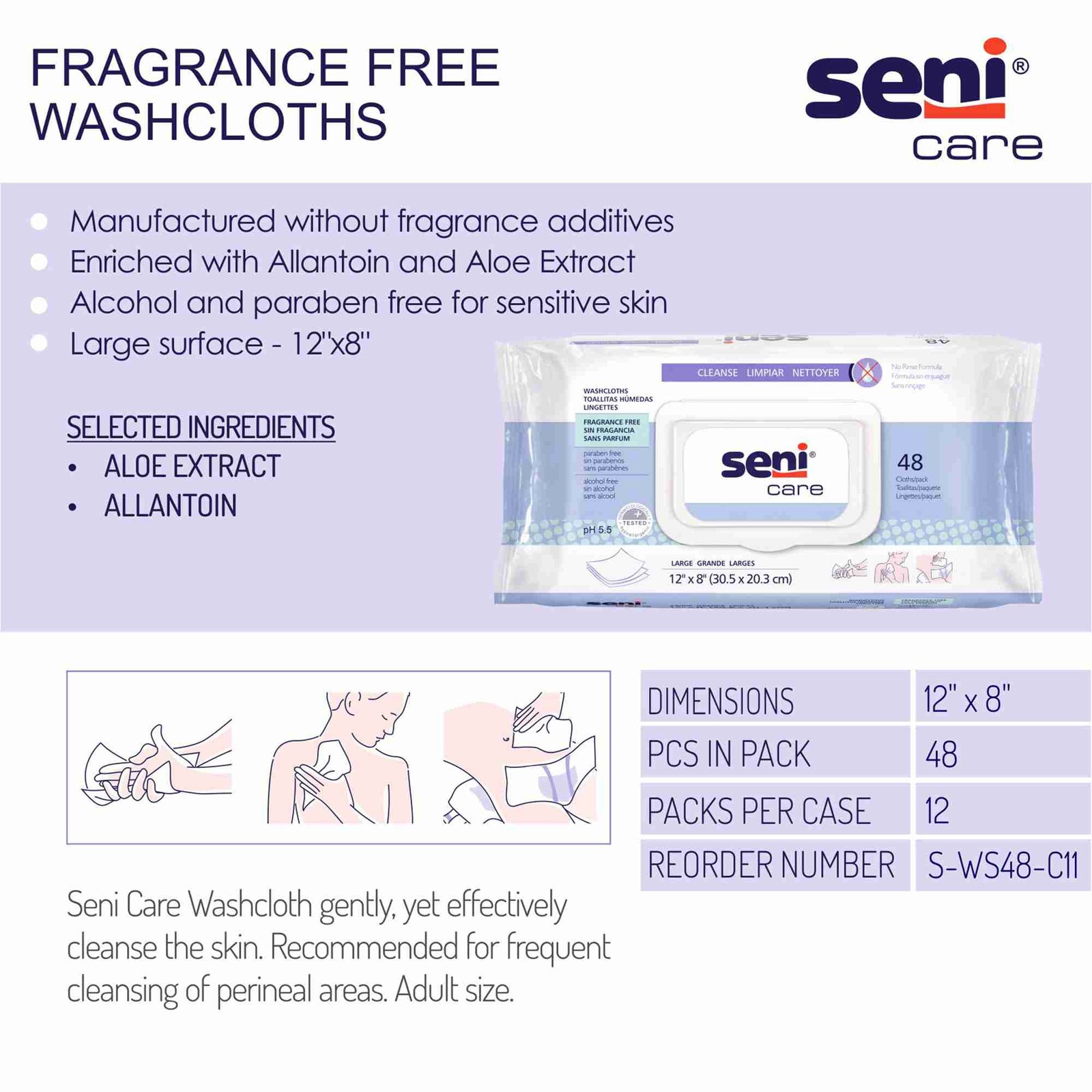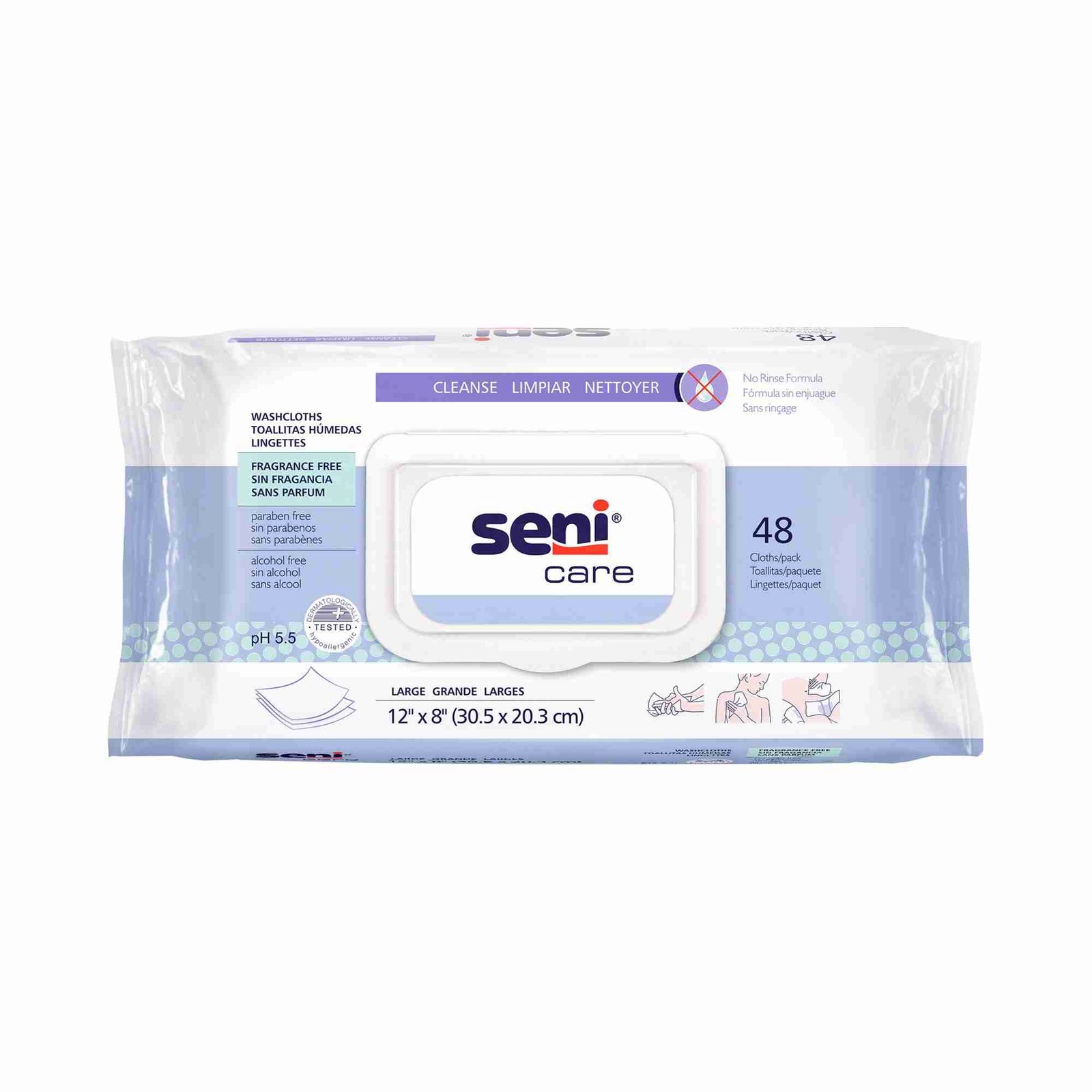 Rinse-Free Bath Wipe Seni® Care Soft Pack Allantoin / Aloe Vera Unscented 48 Count