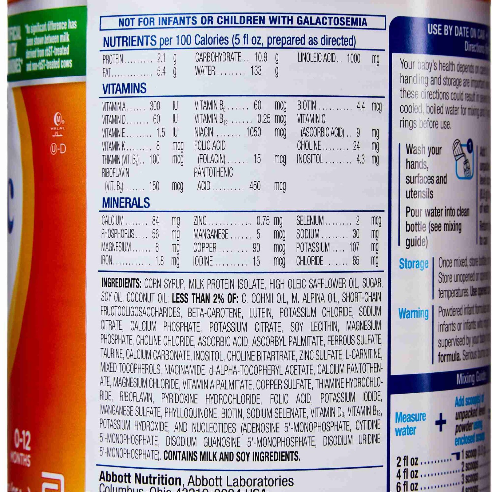 - Abbott’s exclusive formula has: Calcium for strong bones (no palm olein oil); nucleotides to help support the immune system; prebiotics to help promote digestive health; and carotenoids like those naturally found in breast milk