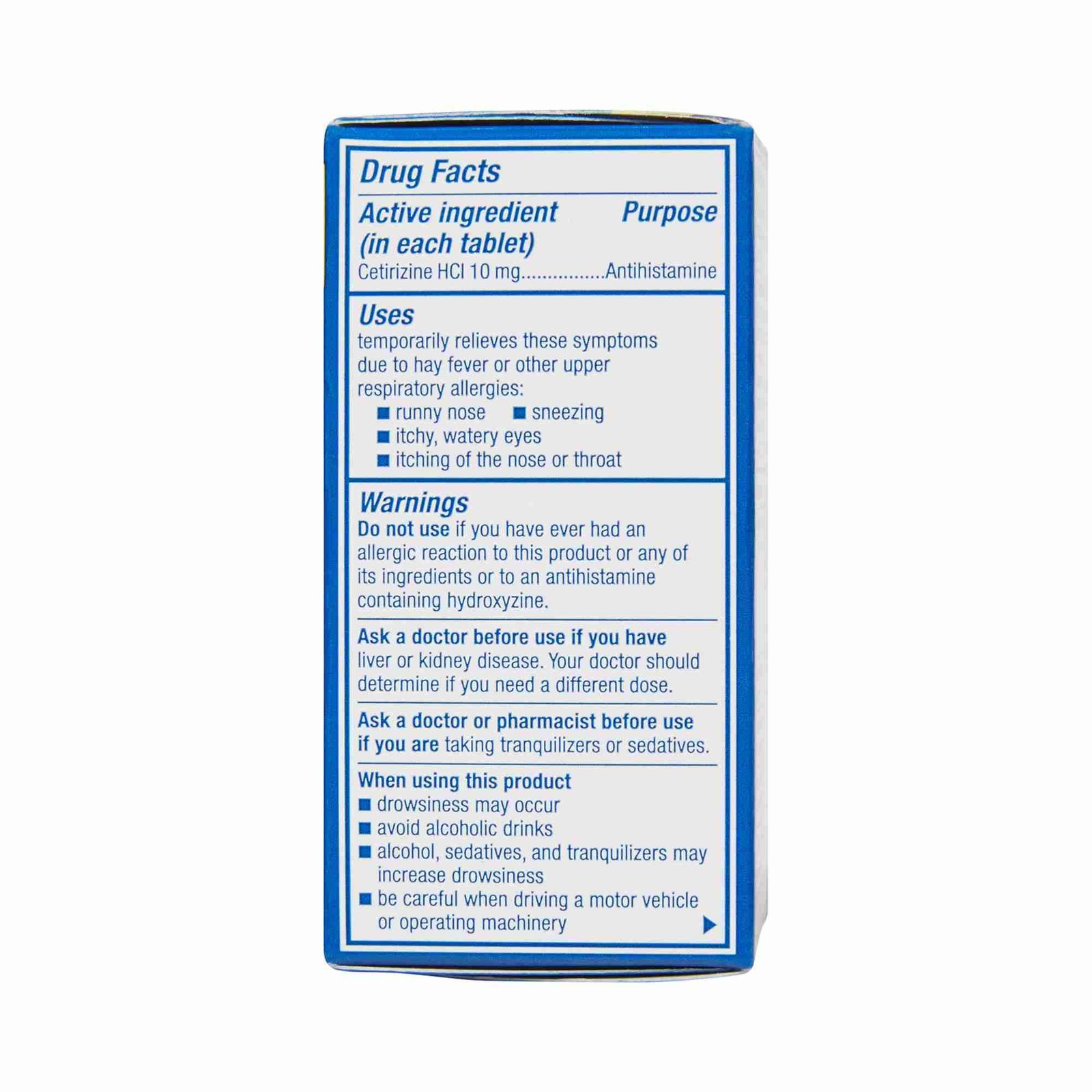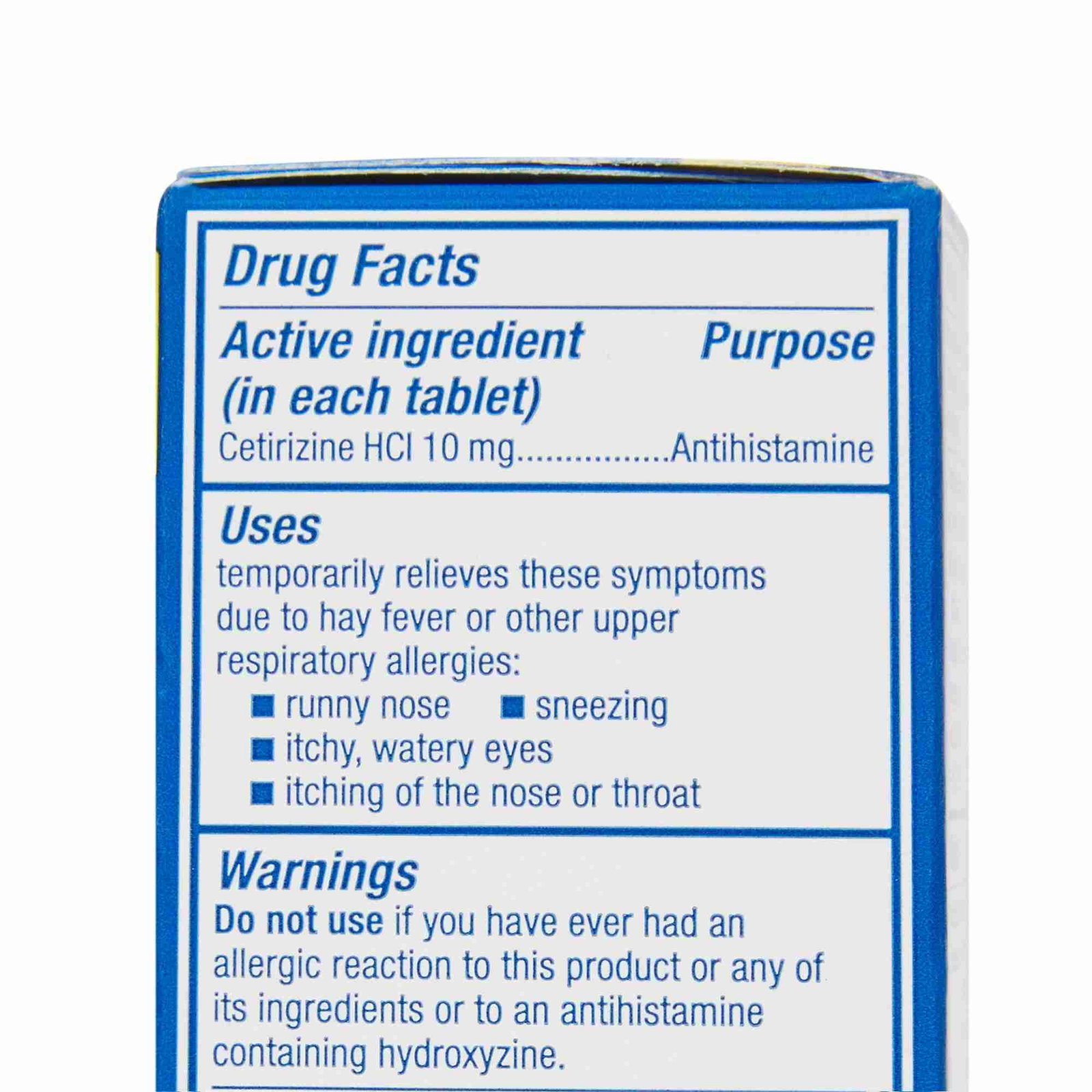 - 10 mg of cetirizine, an antihistamine, per tablet