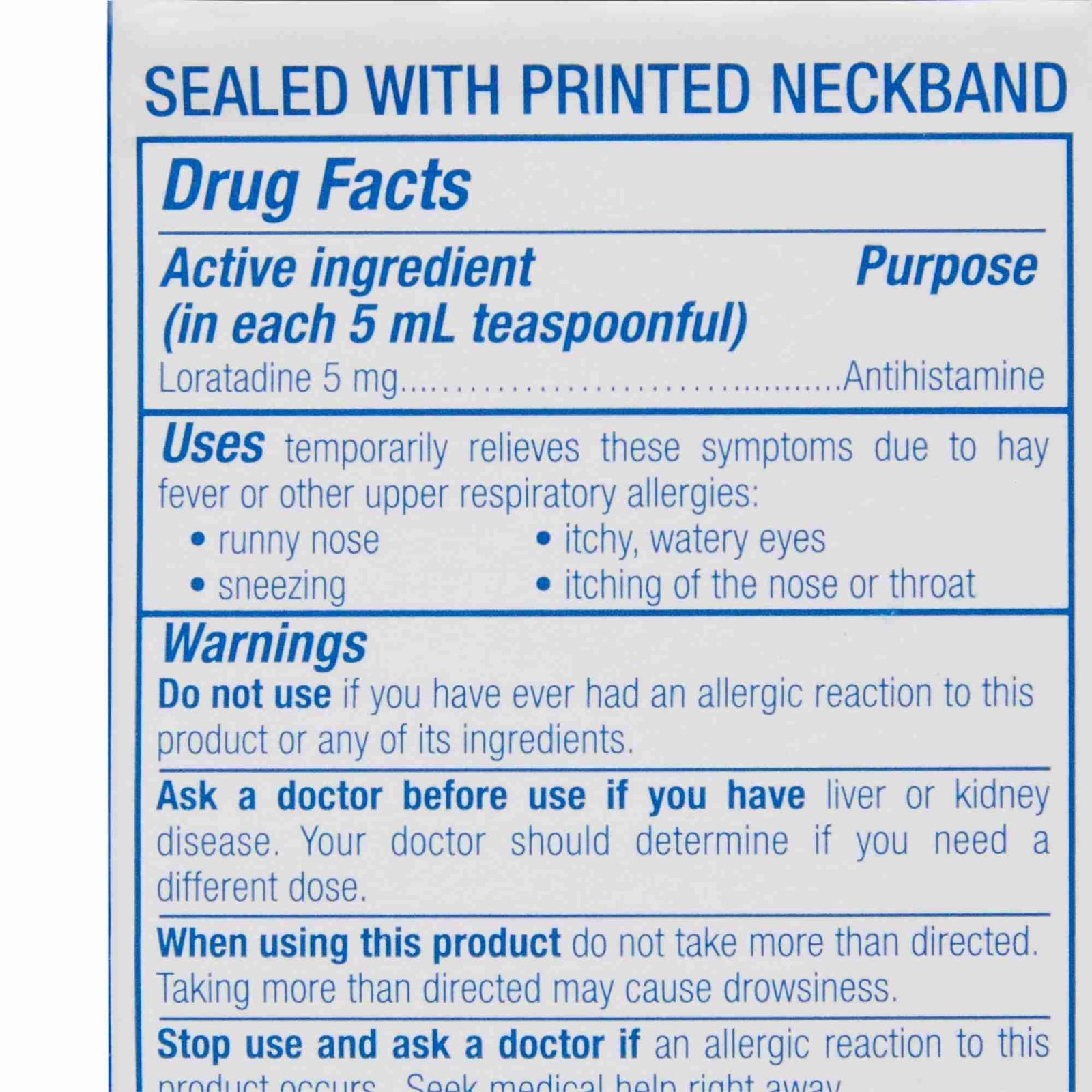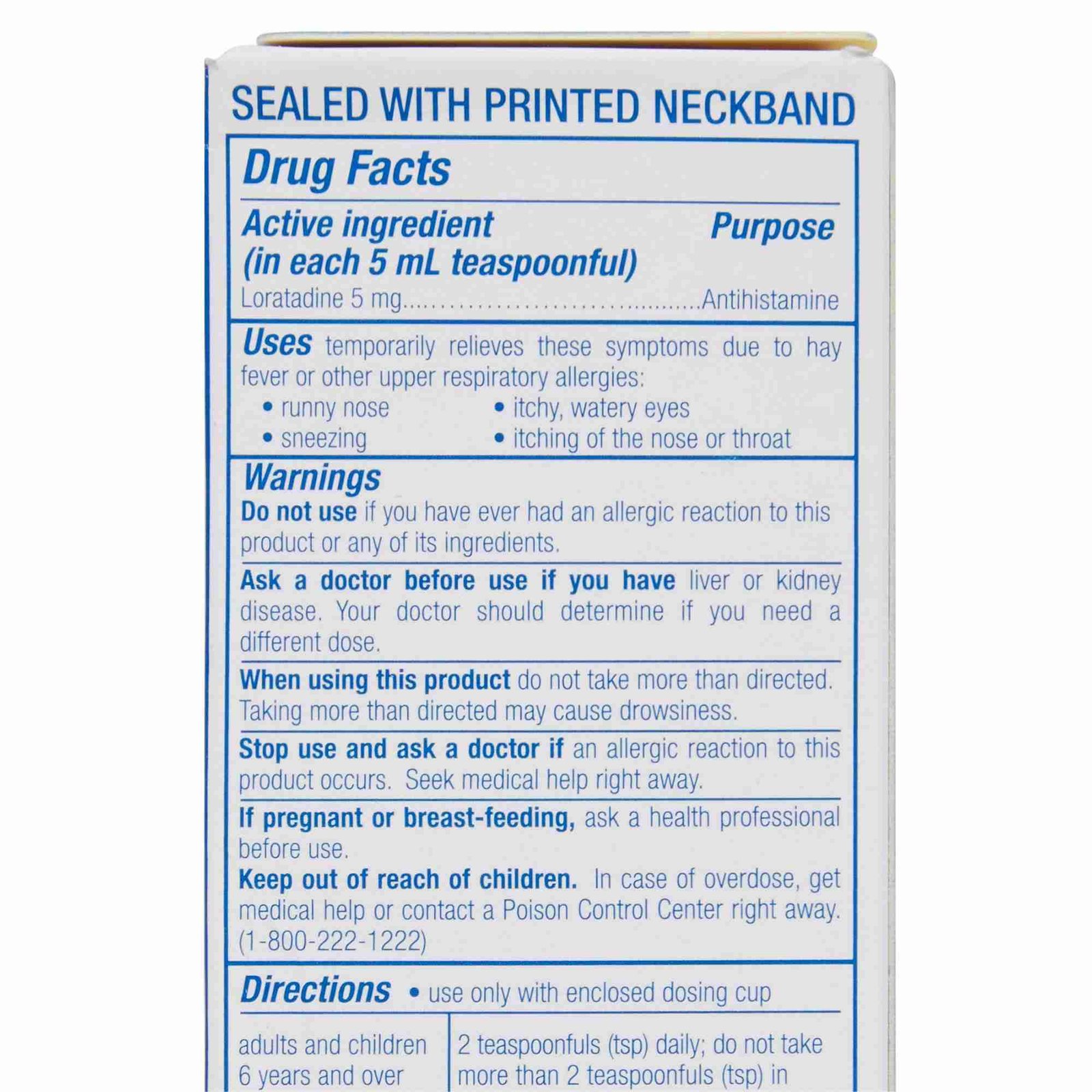 - 5 mg loratadine per 5 mL dose