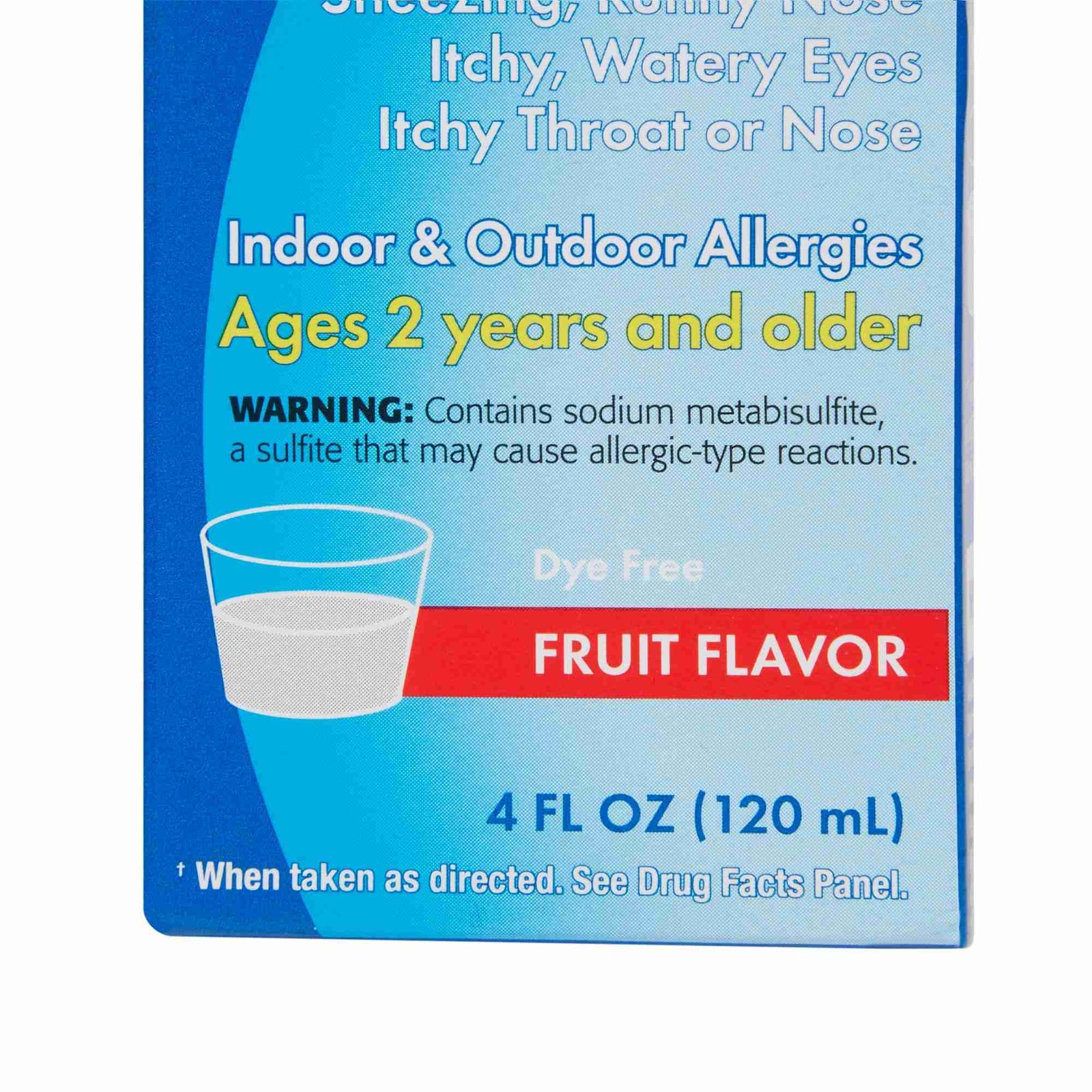 - Fruit-flavored loratadine syrup for children 2 years and older