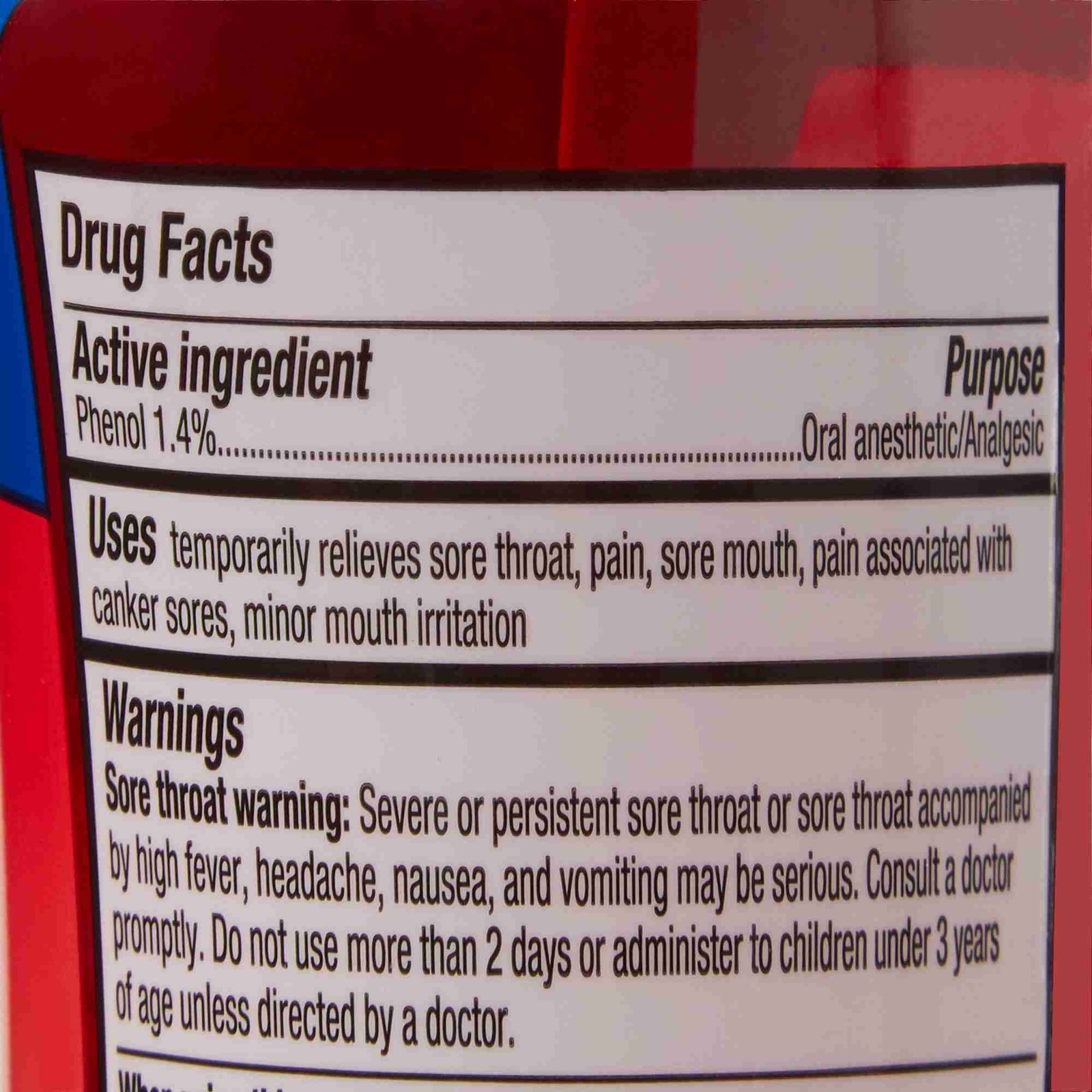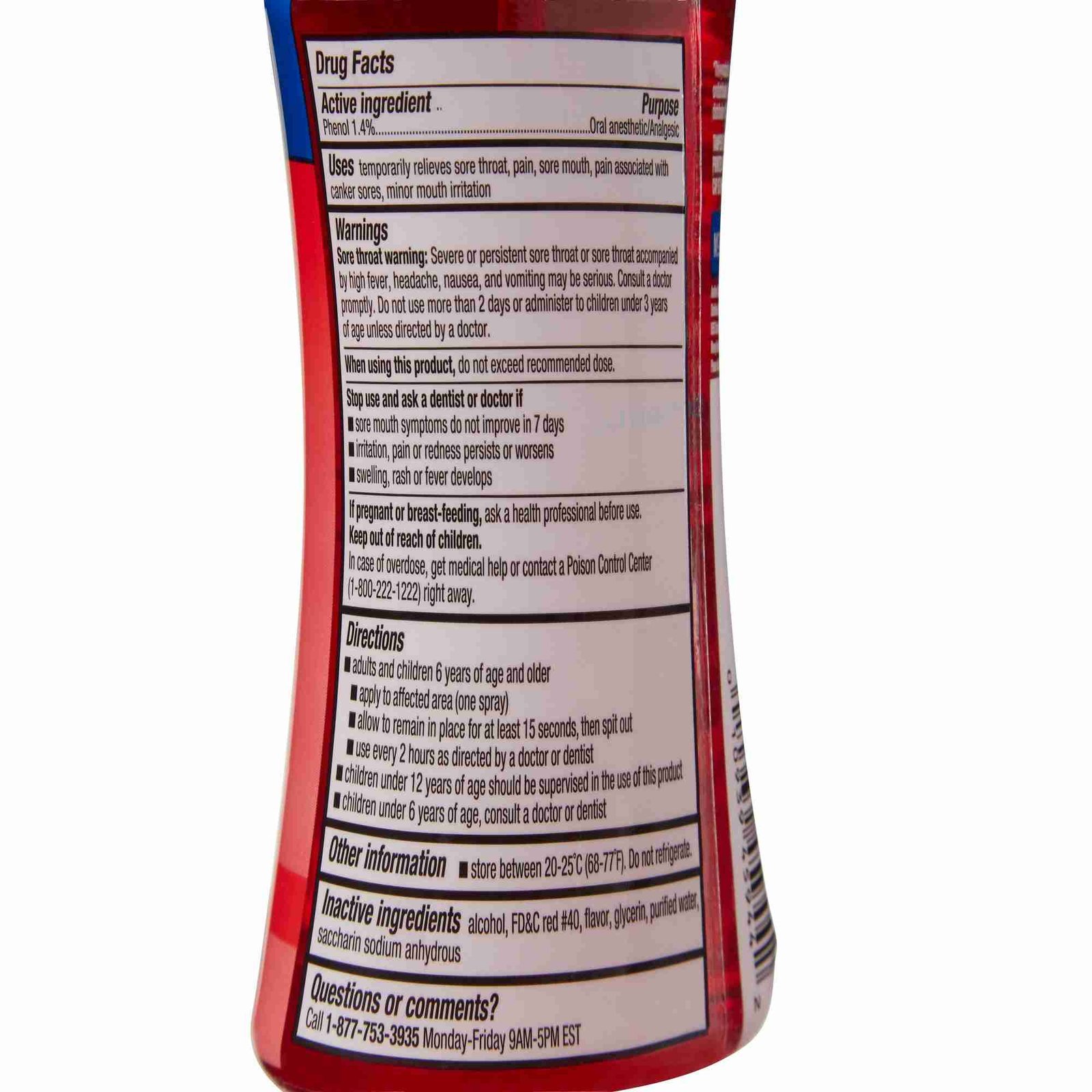 - Fast-acting, long-lasting relief of minor sore throat and mouth pain