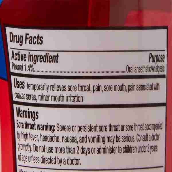 - Fast-acting, long-lasting relief of minor sore throat and mouth pain