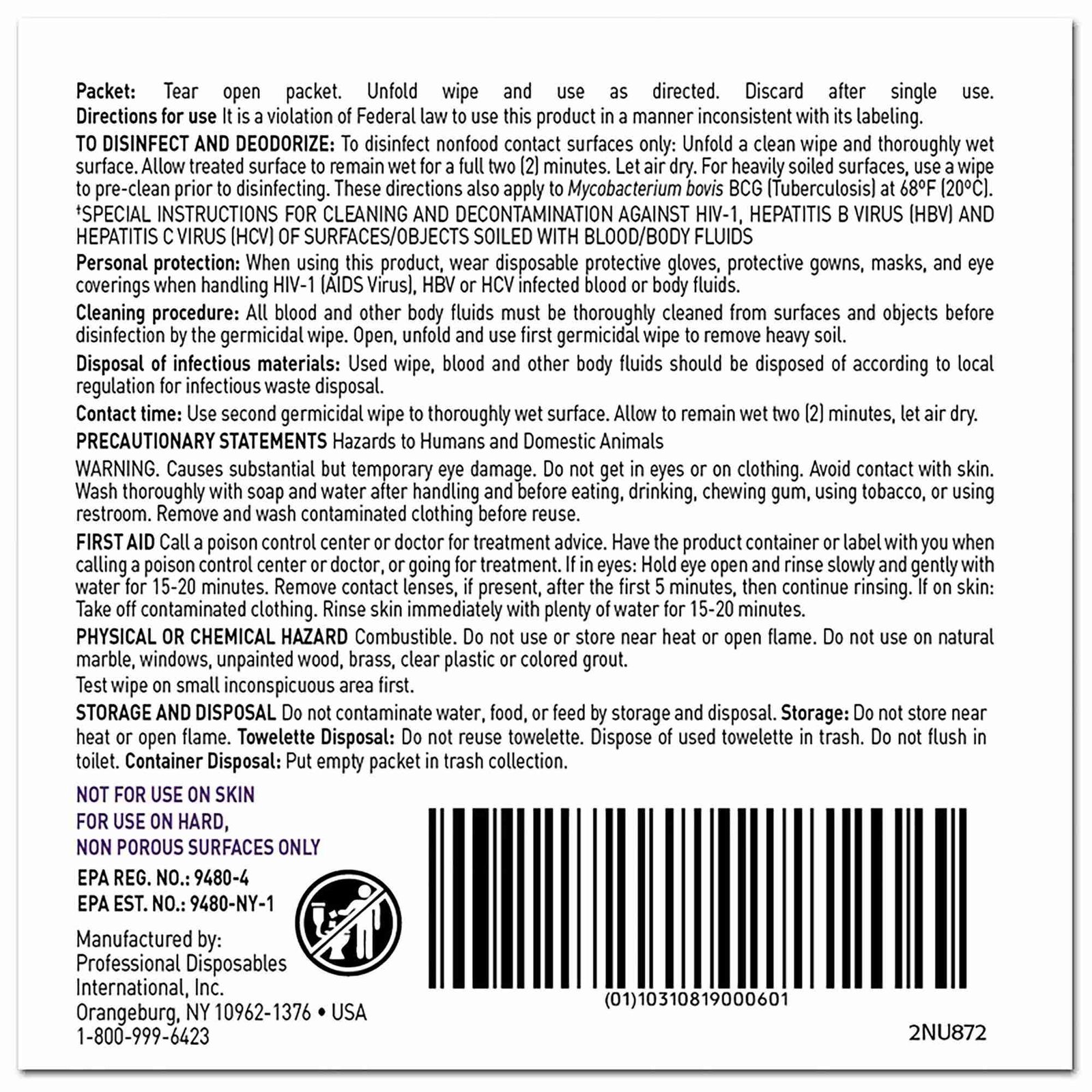| Invoice Description | WIPE, SANICLOTH SUPR XLG 8"X1 4" (65/CN 6CN/CS) |