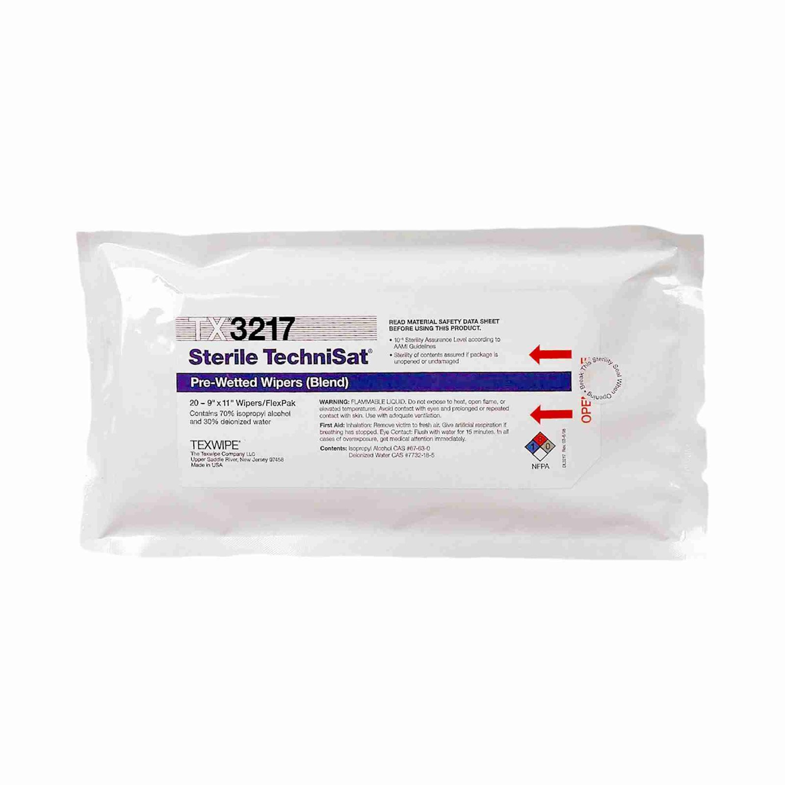 - Sterile TechniSat® TX3217 product is pre-wetted with 0.2 µm (micron) filtered USP-Grade 70% IPA / 30% DIW