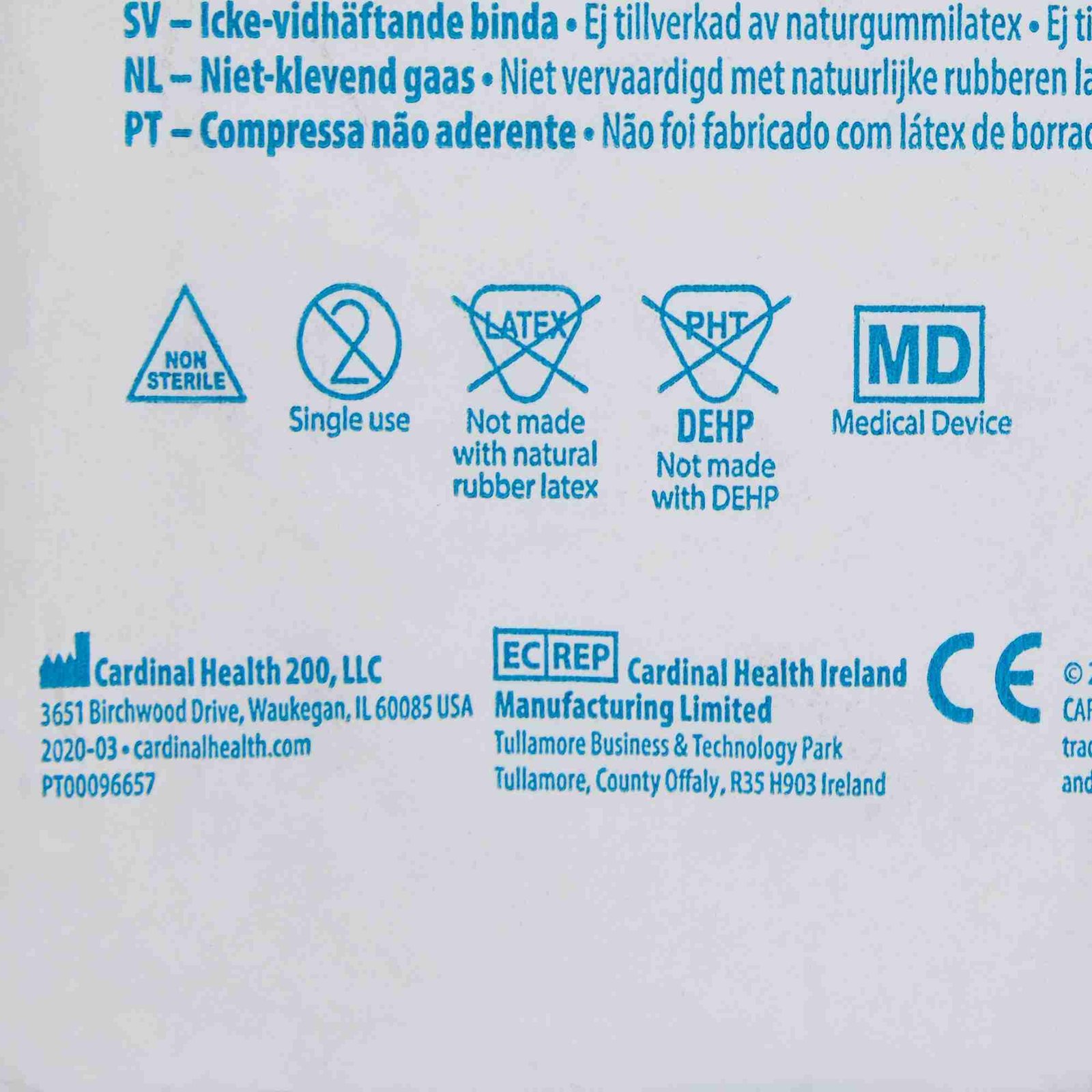 - Each sterile dressing individually wrapped in peel-open envelope