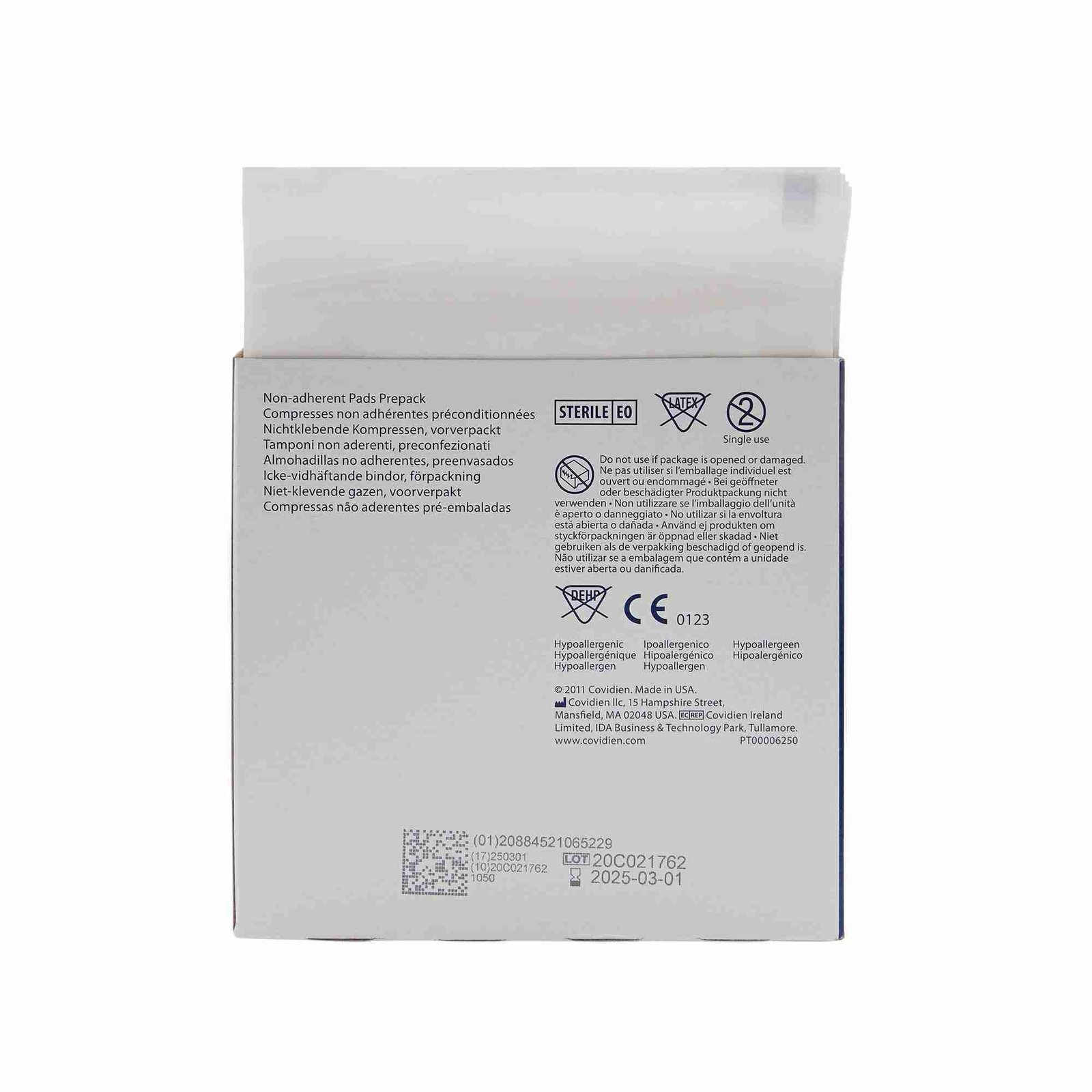 - Each sterile dressing individually wrapped in peel-open envelope
