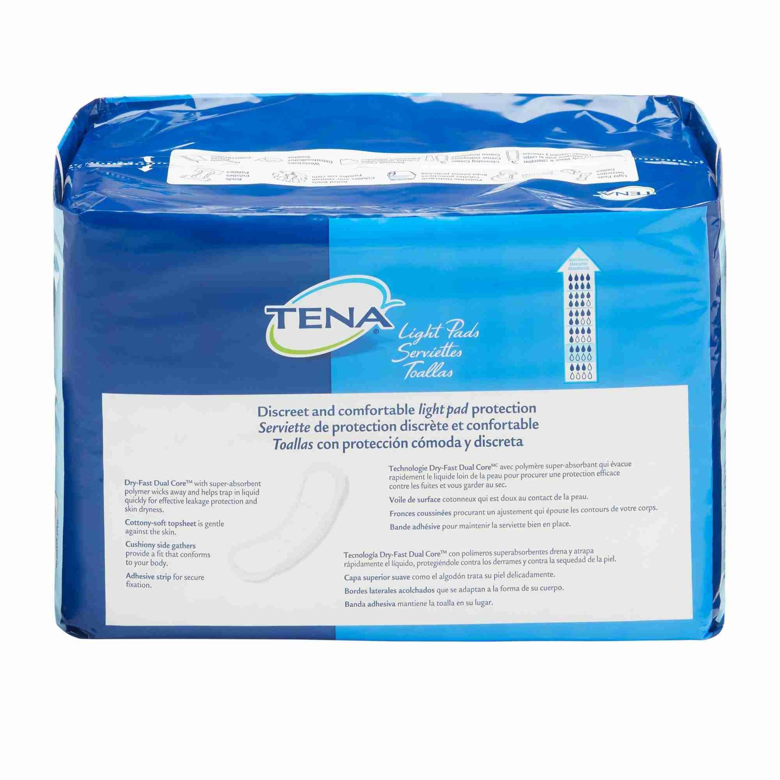 • TENA® incontinence pads have a soft, rapidly drying topsheet that pulls in liquid to keep wearers dry