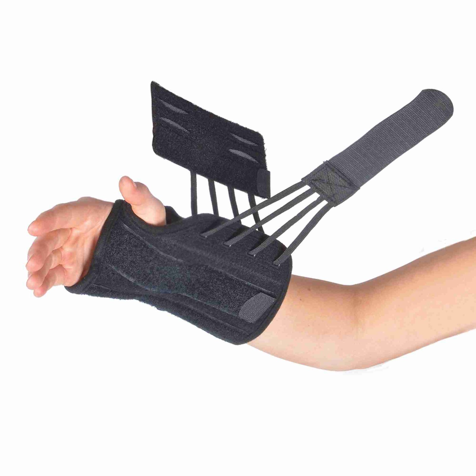 - The brace fits below the palmar crease for full finger dexterity