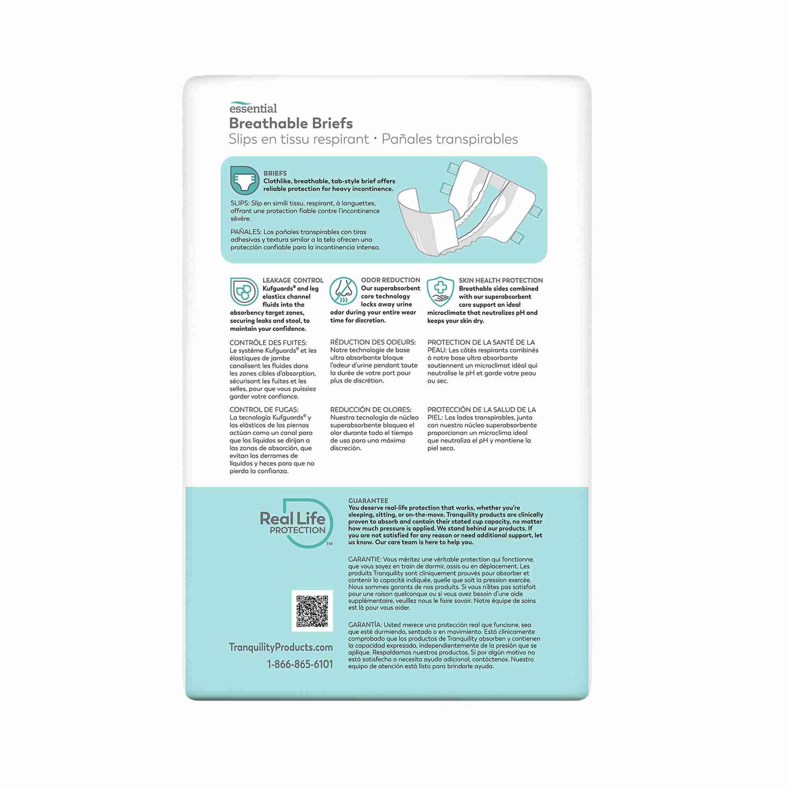 - Clothlike, breathable, tab-style brief offers reliable protection for heavy incontinence