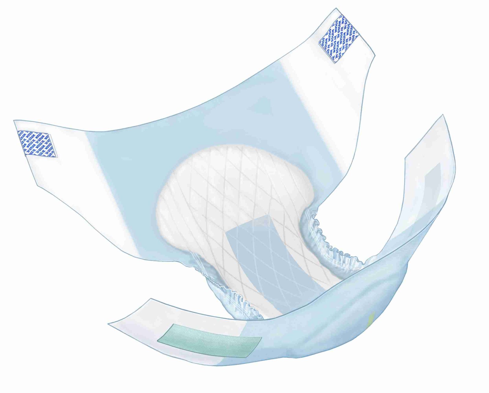 - Cloth-like backsheet is ultrasonically bonded for a “quilted” look and feel