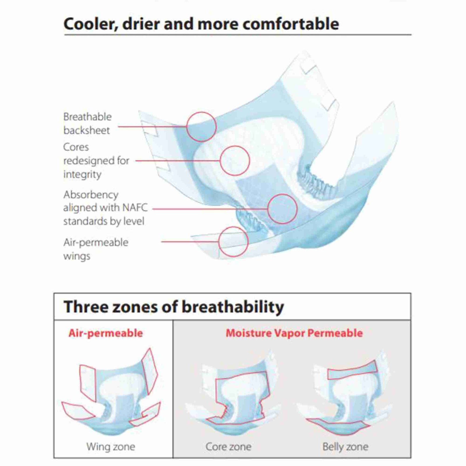 - Cloth-like breathable backsheet with BreatheEasy™ technology enables a cooler, drier and more comfortable experience